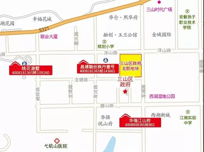 该地块位于三山区政务中心,相邻的浮山路和龙塘路均为三山政务新区的交通主干道,交通便利、畅达全区。