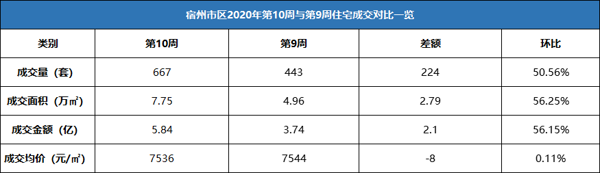 庆自然出字〔2020〕6号地块注意事项: 庆自然出字〔2020〕6号地块建设的商品住宅不少于50%的房源仅限于持有房票的购房户购买,商品房限定销售均价为5800元/平方米,最高销售单价为6300元/平方米,竞得人不得高于销售均价和最高销售单价销售“限对象、限价格”的商品住宅。不少于50%的双限房必须是整栋或整单元规划设计。 宿州 1宿州住宅周成交量667套 据数据统计,第10周(3月2日-3月8日),宿州市区住宅成交667套,成交面积约7.75万㎡,成交金额约5.84亿元。 自疫情好转以来,之前1个月积压起来的购买需求,逐渐释放,宿州楼市也在逐步复苏。且因特殊时期各房企推出的优惠政策,更是进一步促进了宿州楼市成交份额的增长。