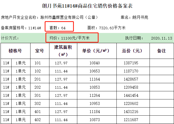 朗月书苑此次备案了11#、14#,共计64套房源,备案均价11000元/㎡。