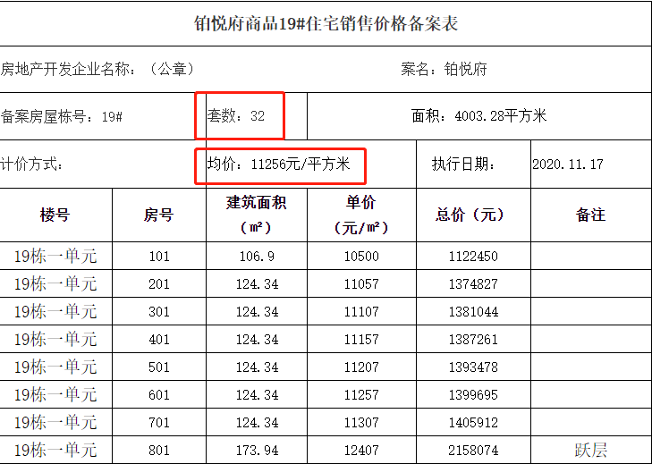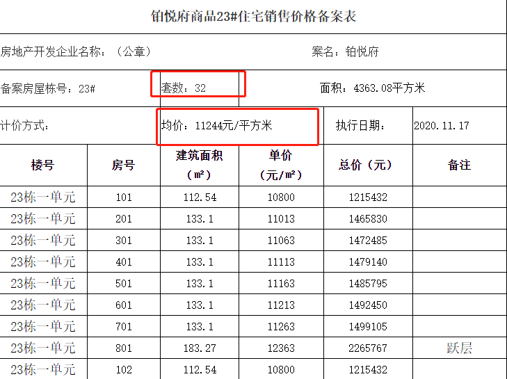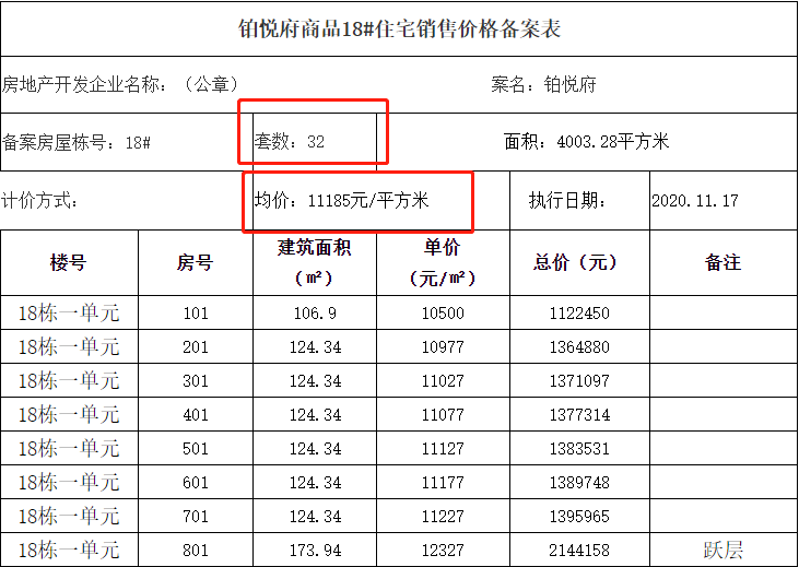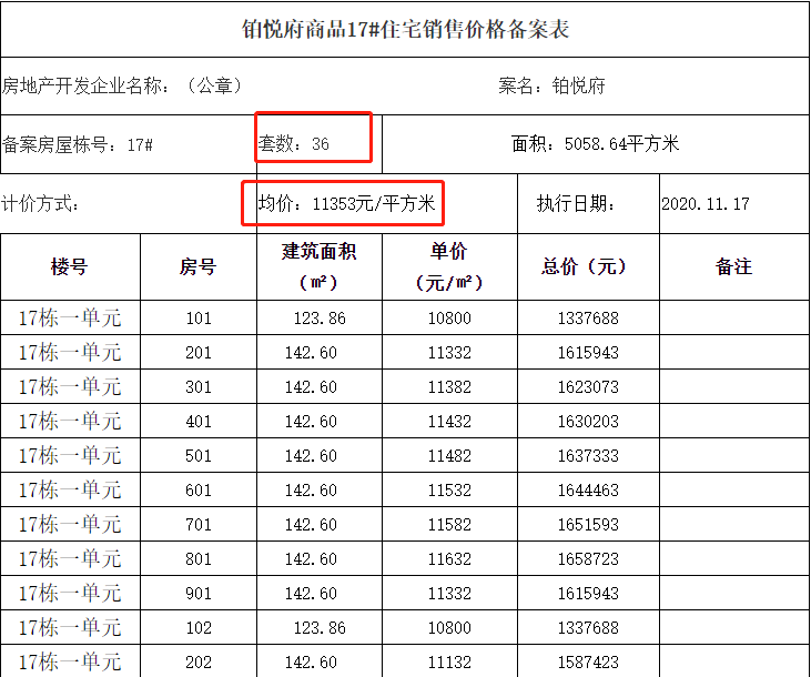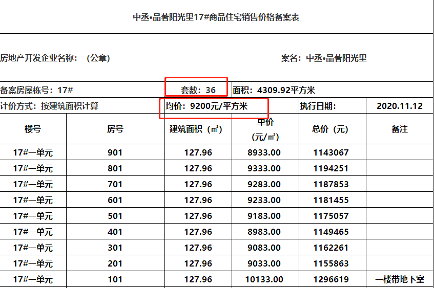 中丞品著阳光里此次备案了17#,共计36套房源,备案均价9200元/㎡。