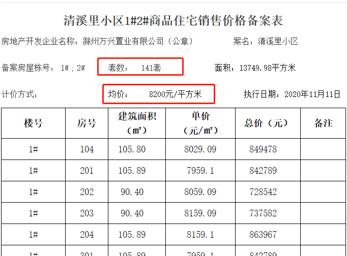 清溪里小区此次备案了1#2#,共计141套房源,备案均价8200元/㎡。