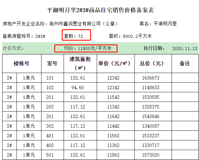 平湖明月里首次备案了2#、3#,共计72套房源,备案均价9490元/㎡。