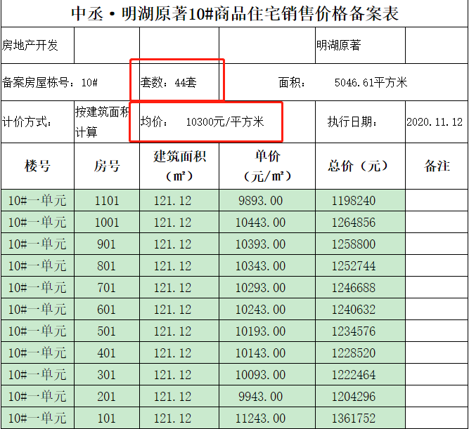 此外,中丞明湖原著还备案了10#,共计44套房源,备案均价10300元/㎡。