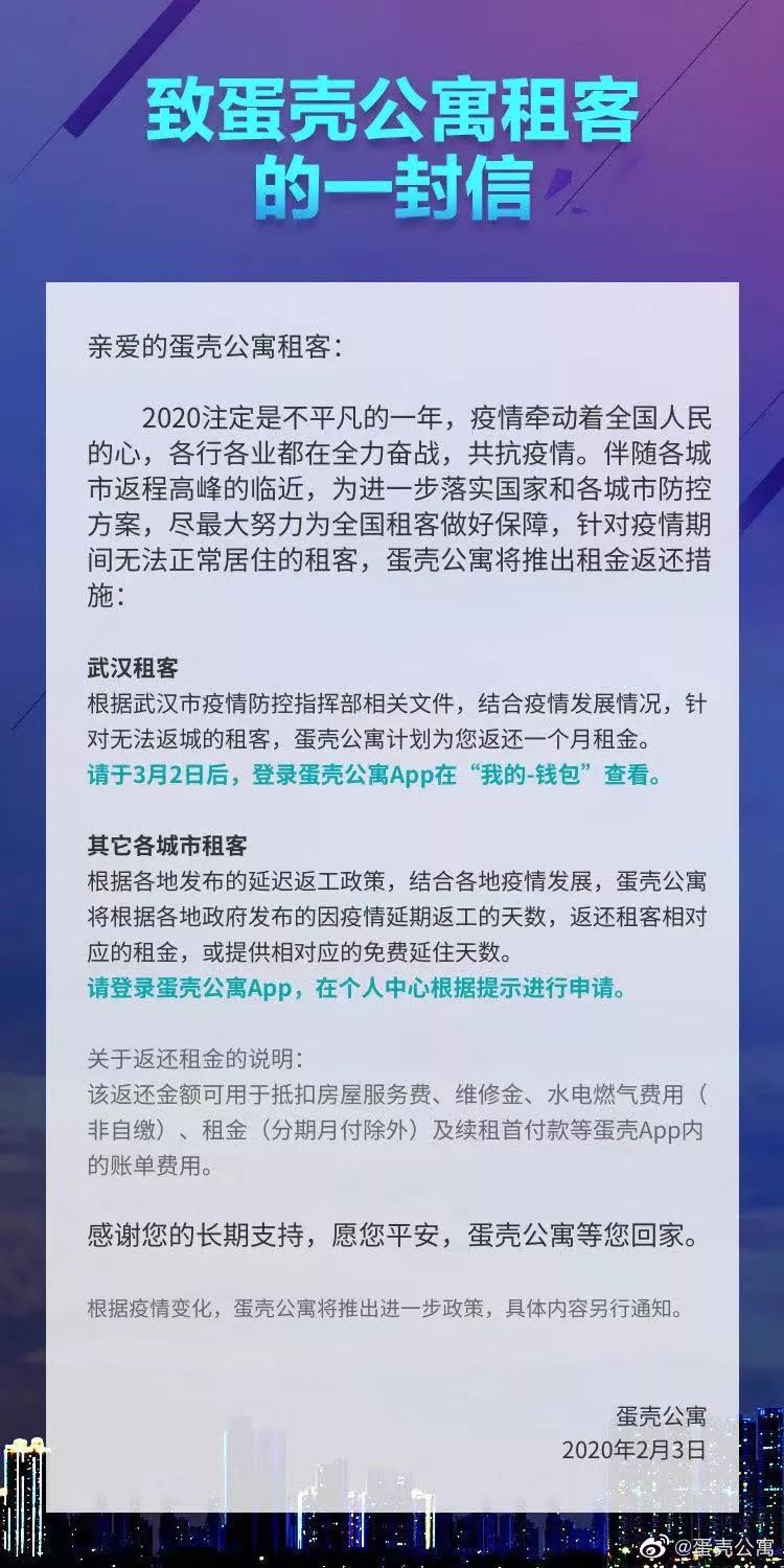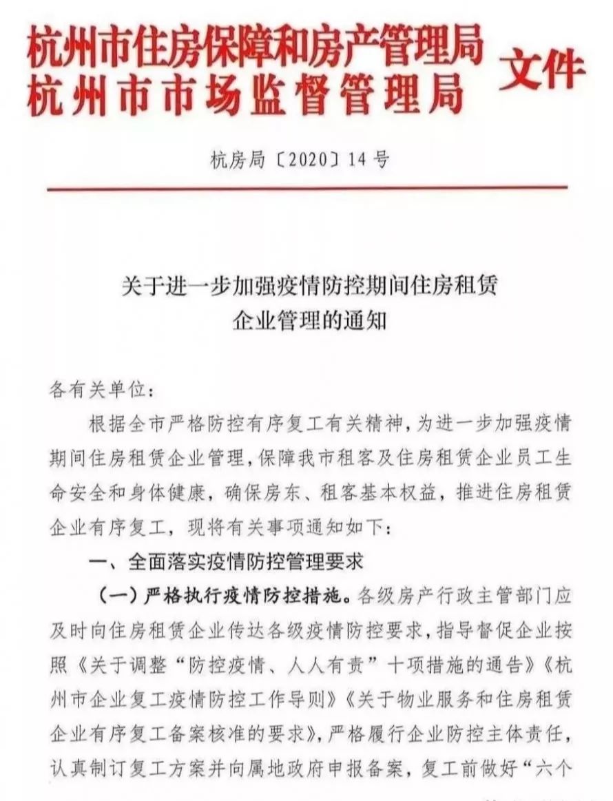 导读:这段时间,“疫情期间房东该不该减租”一直饱受争议;蛋壳公寓和房东之间的“免租风波”也闹得沸沸扬扬。 近日, 全国首个加强疫情期间住房租赁企业管理的通知出台:未与房东就房租减免事宜协商达成一致前,不得... 这段时间,“疫情期间房东该不该减租”一直饱受争议;蛋壳公寓和房东之间的“免租风波”也闹得沸沸扬扬。 近日, 全国首个加强疫情期间住房租赁企业管理的通知出台:未与房东就房租减免事宜协商达成一致前,不得单方面停止支付房租。这是否意味着这段风波就此告一段落了? 杭州住房保管局:未协商一致不得停付房租! 近日,由杭州市住房保障和房产管理局、杭州市市场监督管理局联合发布的《落实防疫举措、规范租赁行为,做好住房租赁企业复工工作》中,重点提到:督促企业规范管理 ,确保租赁市场健康平稳。 文件中关于租房、住房重点提出: 杜绝哄抬物价,呼吁减免租金。 疫情期间,要求住房租赁企业保持住房租金水平的稳定,杜绝哄抬物价、不明码标价等违法行为。同时,呼吁租赁各方当事人在公平、自愿、合法基础上,就租金减免进行协商。 未达成一致不得停付房东房租。 住房租赁企业与房东就租金减免协商未达成一致的,不得单方面停止支付房东租金; 协商一致的,住房租赁企业应将房东减免的租金全部惠及租客,并在租客应付租金中直接予以体现。 此举不仅进一步规范了疫情期间住房市场,也是目前为止全国首个加强疫情期间住房租赁企业管理的通知,不免让人想到近期蛋壳公寓与房东之间的“免租风波”。 房东气炸了:我被蛋壳公寓强制免除房租! 最近,长租公寓巨头蛋壳的做法让很多房东很生气!