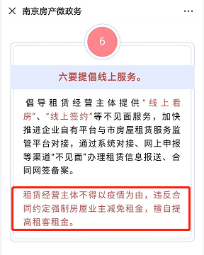 昨天,针对蛋壳公寓拖欠业主租金及要求业主“免租”等事项,深圳市住建局约谈深圳蛋壳公寓相关负责人。 深圳市住建局要求蛋壳公寓高度重视此事,及时组织法律专业人士参与研究制定解决方案,积极与业主进行沟通协商,按照法律规定和合同约定妥善处理相关问题。深圳市住建局将密切跟踪关注事件进展情况。 对此,蛋壳公寓方面未给予回应。 南京官宣,禁止强制房东减免房租! 武汉疫情牵动全国,很多租客由于被困家中,有关机构、组织发文倡议,呼吁大家互相帮助,倡议房东能施行一些系列的减租行动。 虽然多个城市发布倡议文件,也有房东纷纷实行,但是倡议只是一个参考意见,并不是强制要求。 但是也存在租客拿相关推文、倡议给他们施压。 这让不少房东颇感无奈,在疫情面前谁都不容易,能减免租金是情分,无法减免租金也不能形成道德绑架。 近日,为了避免减免租金的倡议形成道德绑架,南京也出台了相关政策,据南京市住房保障和房产局官微——南京房产微政务消息,租赁经营主体不得以疫情为由,违反合同约定强制房屋业主减免租金,另外,房东也不可擅自提高租客租金。