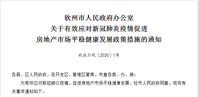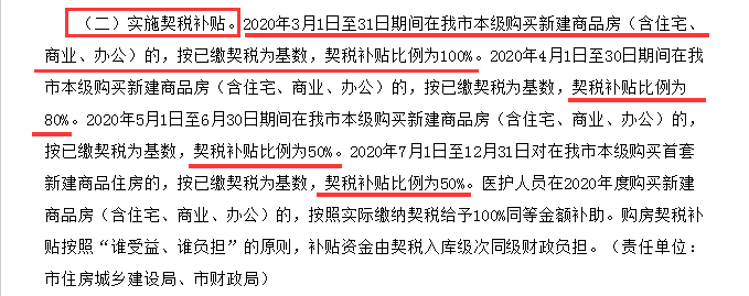 导读:调控,再一次来了! 地方出台契税新政,3月份购房补贴100%!而央行再出手,意外暴露降准降息仍有空间! 政策暖风下,有买房人却已经扛不住了! 2020年买房,到底应该注意什么? 广西钦州:3月购房契税... 调控,再一次来了! 地方出台契税新政,3月份购房补贴100%!而央行再出手,意外暴露降准降息仍有空间! 政策暖风下,有买房人却已经扛不住了! 2020年买房,到底应该注意什么? 广西钦州:3月购房契税补贴补贴100% 4月补贴80% 近日,广西钦州,也放大招了! 2月25日,广西钦州市人民政府办公室发布《关于有效应对新冠肺炎疫情促进房地产市场平稳健康发展政策措施的通知》,对于购房者在相应的时间段买房实施契税补贴。具体如下:
