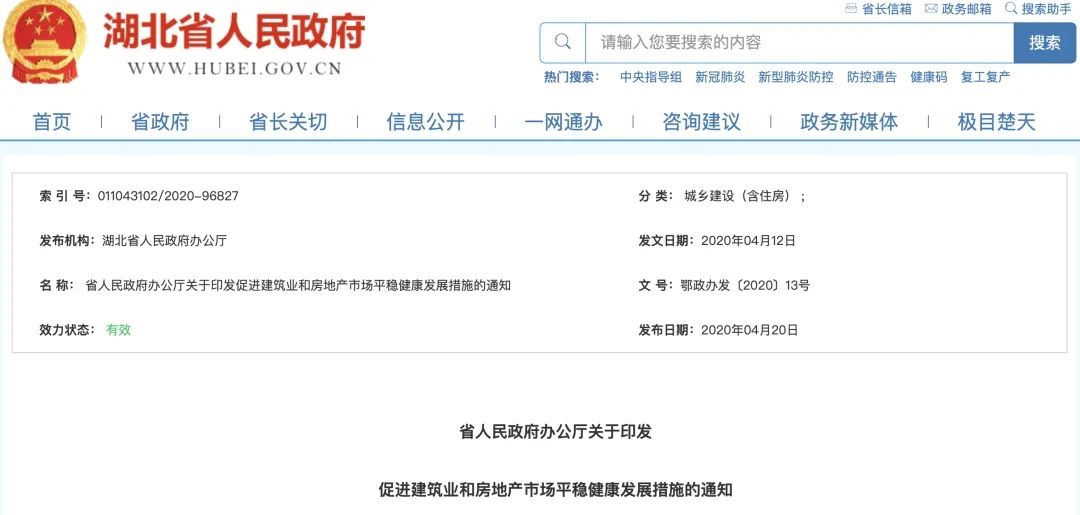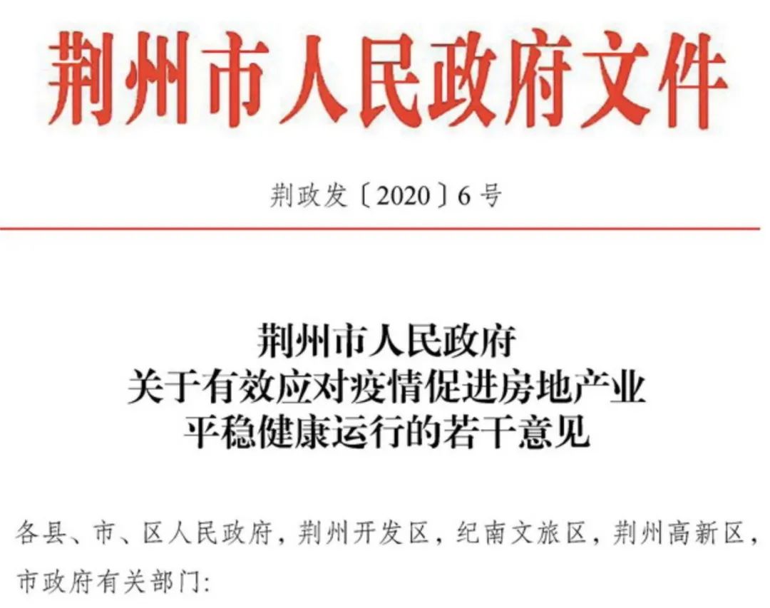 也就是在政策期限内购买房子,至少可以省1万元,所以对于有购房意向的,踩准政策点很有必要。 那么,荆州为什么会出台如此大尺度的购房新政呢? 主要原因还是在疫情期间,荆州市房地产市场成交遭遇大幅下跌。 根据荆州市住房和城乡建设局官网消息,2020年1~3月,新建商品房销售1404套,销售面积15.97万㎡,同比减少66.46%;其中,新建商品住房销售1200套,销售面积13.91万㎡,同比减少66.63%。 此外,2020年1~3月,存量房成交842套,成交面积8.59万㎡,同比减少42.15%;其中,存量住房成交811套,成交面积7.98万㎡,同比减少45.17%。 截至2020年3月末,荆州市城区已批准预售尚未售出的商品住房18702套,2019年一整年,新建商品住房销售17584套,存量住房成交8762套,按照这个节奏,光是消化库存商品住房,都需要比较长的时间。 再者,房地产在荆州的经济结构中占有比较重要的位置,在2019年,房产投资也成为拉动GDP增长的主要动能之一,所以保证房地产健康有序的复苏,对于荆州整体经济复苏,具有重要的意义。 省政府紧急发文 并未制止荆州新政 就在荆州市出台楼市新政之后,同日湖北省政府也出台了关于《促进房地产市场平稳健康发展的措施》。