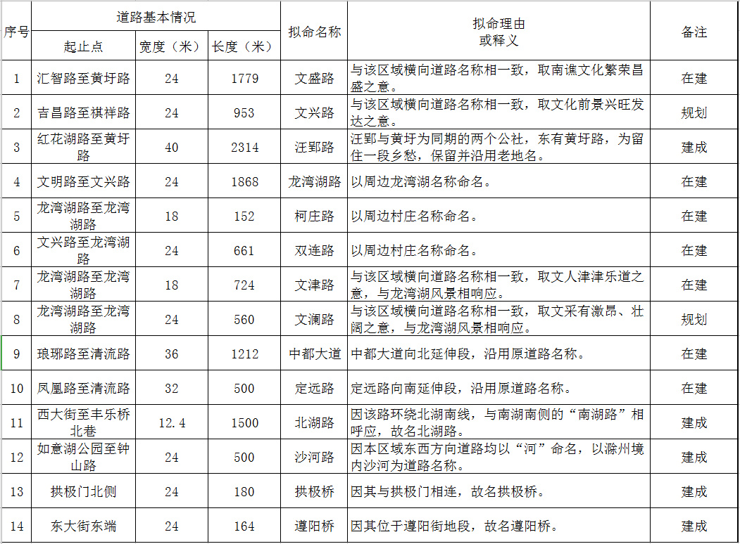 本招标项目共分为2个标段,1标段为2号线延长线、3号线延长线、4号线延长线、6号线一期工程保险经纪服务;2标段为7号线一期、8号线一期及S1线工程保险经纪服务。招标项目规模:合肥市轨道交通7号线一期、8号线一期及S1线工程。 招标项目预计进场日期:2020年8月(合同签订后),服务期限:自合同签订之日起至合肥市轨道交通7号线一期、8号线一期及S1线线路开通运营之日结束,若合同范围内保险经纪服务工作未履行完毕,则服务期限至保险经纪服务工作履行完毕之日结束。 2合肥巢湖东站开通至上海站始发高铁 自7月10日起,巢湖东站正式开通至上海站始发高铁列车,运行线路是巢湖东站、合肥站、南京南站、上海站。G7262次动车组列车每日上午7:12分巢湖东站始发,经合肥站、南京南站,上午10:13分抵达上海站,全程仅需3小时1分。 池 州 1池州市再次上调最低生活保障标准! 为进一步加大民生保障力度,让困难群众共享经济社会发展成果,根据《安徽省最低生活保障办法》《安徽省民政厅关于调整提高2020年最低生活保障标准的通知》要求,经市政府同意,池州市从2020年7月1日起调整最低生活保障标准。 本次调整的最低生活保障标准为: 贵池区(含平天湖风景区)、开发区城市居民和农村居民最低生活保障标准均提高到634元/月; 东至县提高到625元/月; 石台县提高到611元/月; 青阳县提高到649元/月 九华山风景区提高到666元/月。 各县区调整后的最低生活保障标准分别比上一年度提高了43元、42元、41元、44元和45元。 据了解,去年,贵池区、池州经济技术开发区和平天湖风景区城市居民和农村居民最低生活保障标准为591元/月,东至县为583元/月,石台县为570元/月,青阳县为605元/月。九华山风景区为621元/月。 根据市民政局6月30日的数据统计,池州市农村低保户数为27527户,1至6月发放低保金9725.5万元;城市低保户数为5443户,1至6月发放低保金2056.2万元。 滁 州 1滁州新建道路、桥梁,在线征集命名! 近期,滁州市发布了南谯新城以及市区部分道路、桥梁拟用名称征求意见的公告,具体情况如下: 为加强地名命名社会参与度,丰富地名文化内涵,提高社会对地名的认同感,现对南谯新城及市区部分道路、桥梁拟用名称进行公示,欢迎社会各界提出宝贵意见。请将意见建议于8月7日前以电话或邮件方式反馈至市地名办,滁州市将综合反馈意见对拟用名称进行完善。 南谯新城及市区部分道路、桥梁 命名方案(征求意见稿)